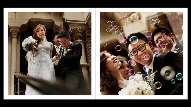 I’ve always wanted to shoot square format on a DSLR. I masked my camera mirror with 2 black lines so I knew what square format would be in my viewfinder although I could see the whole frame. In raw conversion, I cropped square and viola! I approached the couple before their wedding with my idea and they loved it and trusted me implicitly. The only correction done to the images is colour correction and skin retouching. I have always wanted to produce a wedding album with a single image per side and present an unadulterated wedding story showing in-camera artistry. – Jerry Ghionis