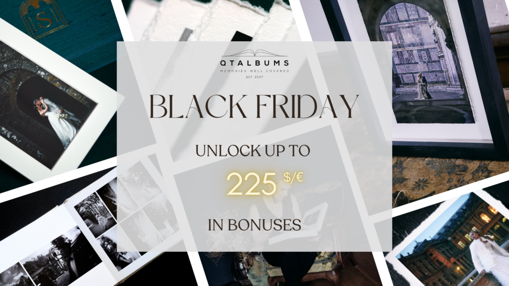 Get amazing savings with QT Albums when you purchase Black Friday coupons! Unlock up to 225$/€ in bonuses!