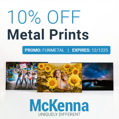 Experience McKenna’s stunning Metal Prints that bring your clients’ photos to life with incredible depth and vibrant color. For a limited time, enjoy 10% off Metal Prints, which includes your choice of premium metal finish, with the option of round or square corners. Each print comes ready to display with a standard metal hanger for a sleek, modern presentation. Visit mckennapro.com today!