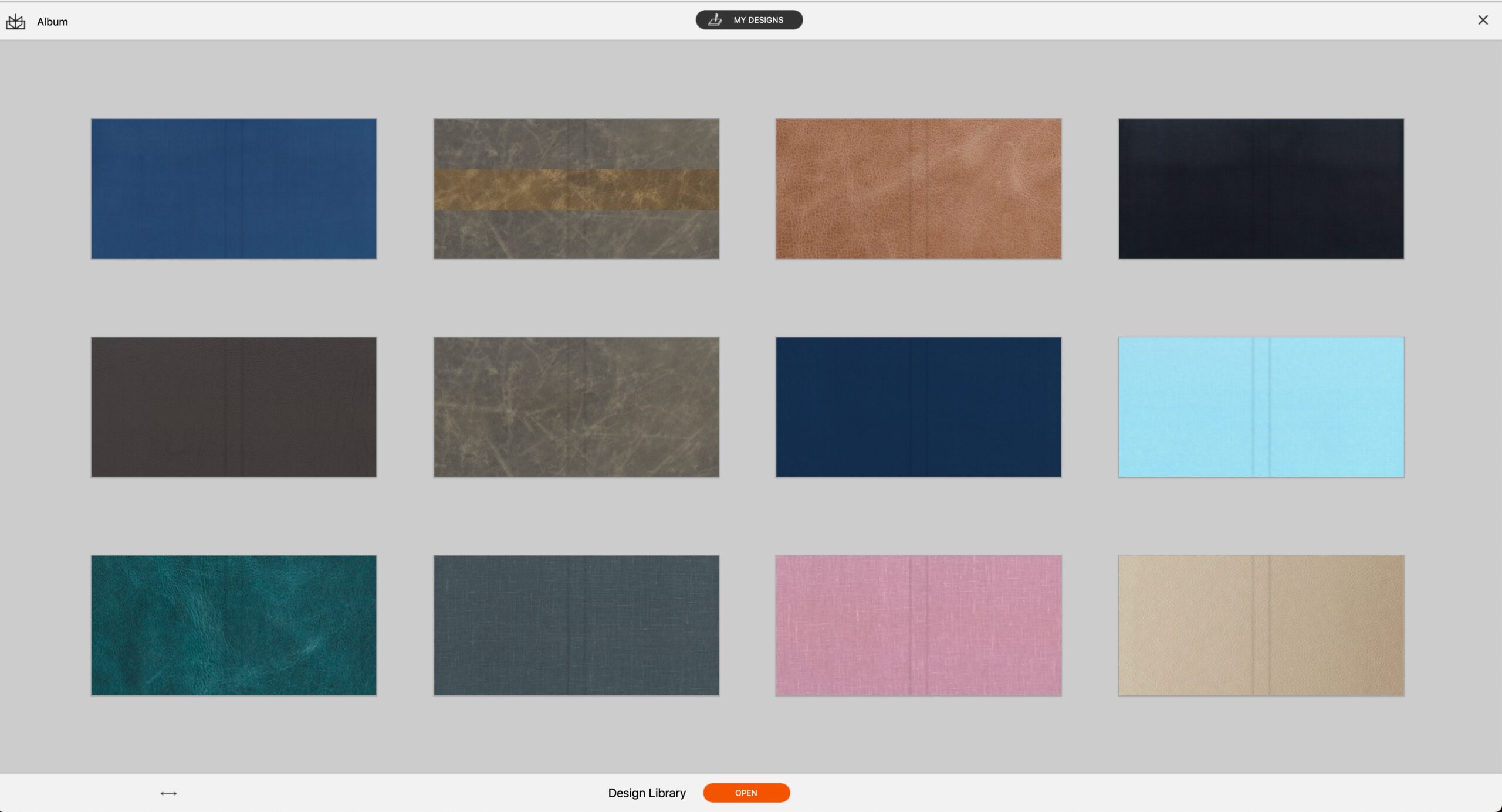 The Cover Material Designer now works seamlessly with Design For Me. When your album is auto-designed, your cover is too. Quickly swap out cover materials with a single click—leather, linen, custom fabrics, or anything your lab provides.