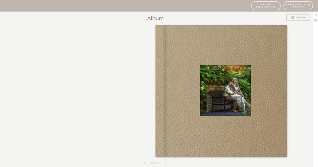 All cover designs push seamlessly to the Online Design Proofer. When your clients proof their album and see their gorgeous online flip book, they’ll have a preview of their entire album, including the cover material.